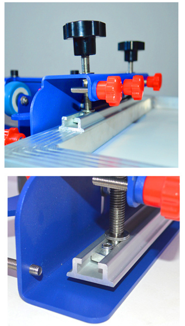 与原有的四色一站打印机相比,该新型打印机具有微调/对准功能。如果你想要进行精确的颜色匹配,你可以使用那些小的红色手柄来稍微向左或向右移动屏幕框架。是彩色印花的好选择。 |